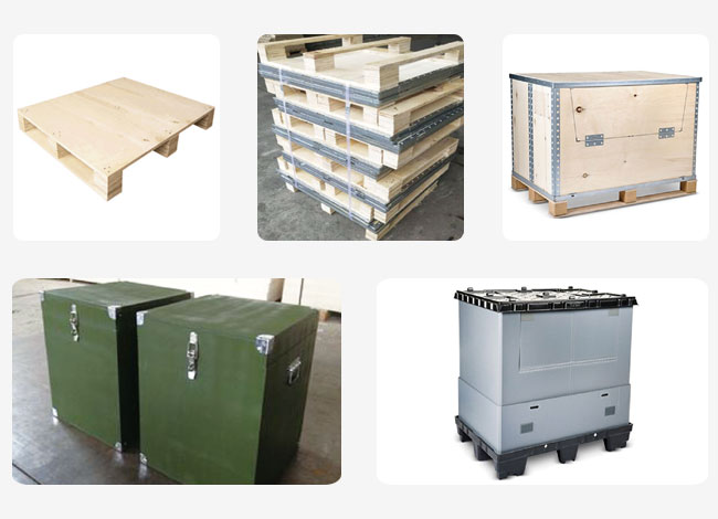 主要產(chǎn)品有: ●普通木包裝系列:木箱、木棧板(托盤)、板條箱膠木箱、圍框等; ●普通鐵制包裝系列:鐵架、鐵條箱、鐵皮箱、鐵絲箱、鐵棧板、周轉器具等; ●輔助包裝系列:真空包裝、防銹包裝、工具包、打包帶、泡沫填充包裝等; ●包裝服務系列:發(fā)動機包裝、缸體缸蓋防銹包裝、密封墊油底殼連桿包裝等。